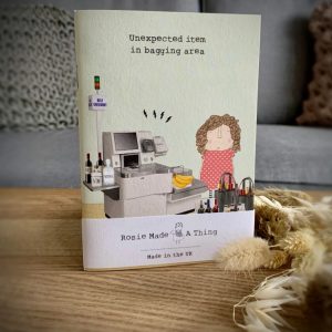 ‘Unexpected Item In Bagging Area’ A6 Notebook by Rosie Made A Thing