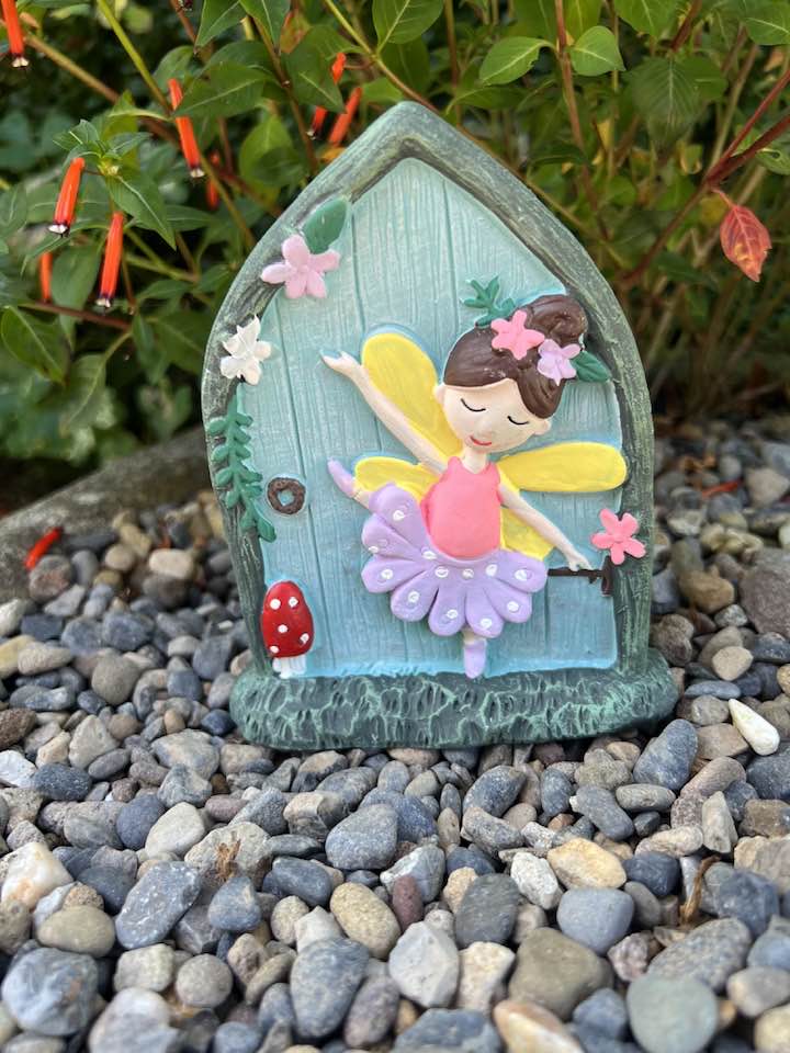 A wonderfully sweet fairy door featuring a pretty dancing fairy. 14cm tall