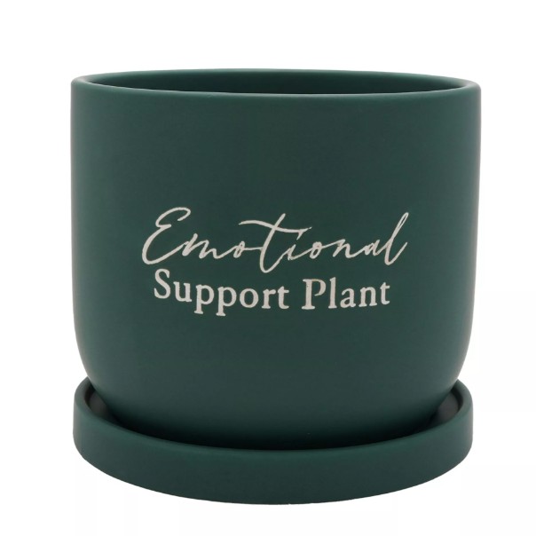 Elevate your home decor collection with this dark green, ‘Emotional Support Plant’ plant pot, from The Collection by Country Living. This makes a delightful and witty addition. Crafted with care and a touch of humour this charming planter offers the perfect home for beloved plants. The colour and minimalist design complements any decor style, making it an ideal choice for a wide range of plant varieties.