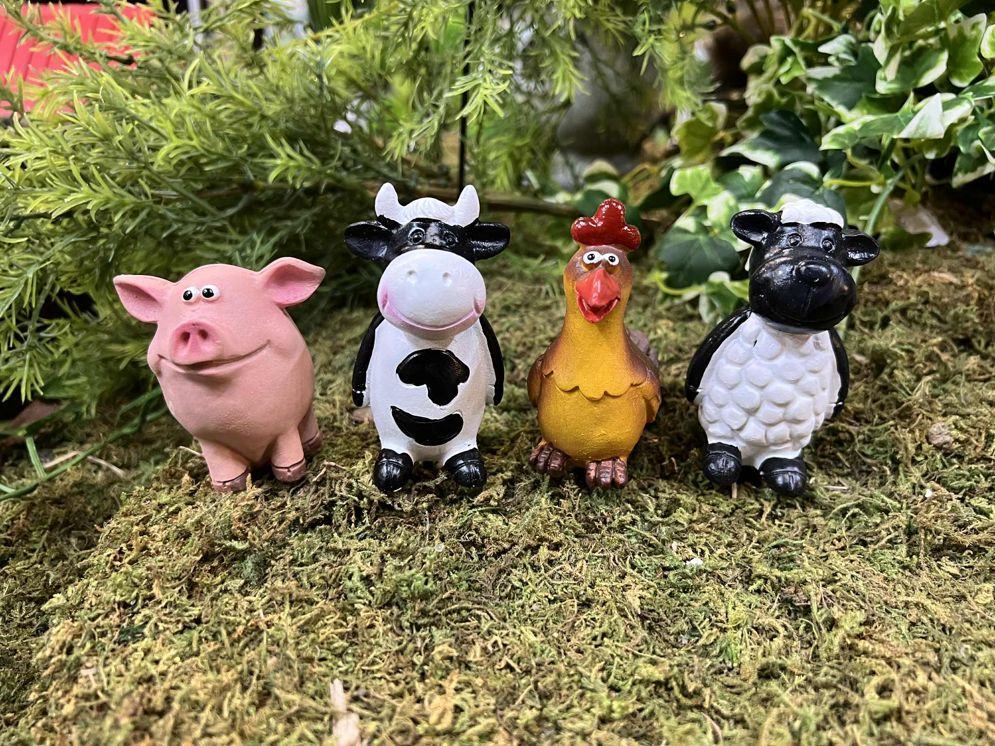 Lovely little animals each set on a short stake to push into soil or compost. Perfect for fairy gardens, flower pots, window boxes etc. 16cm tall incl stake. Made from resin, suitable for outside