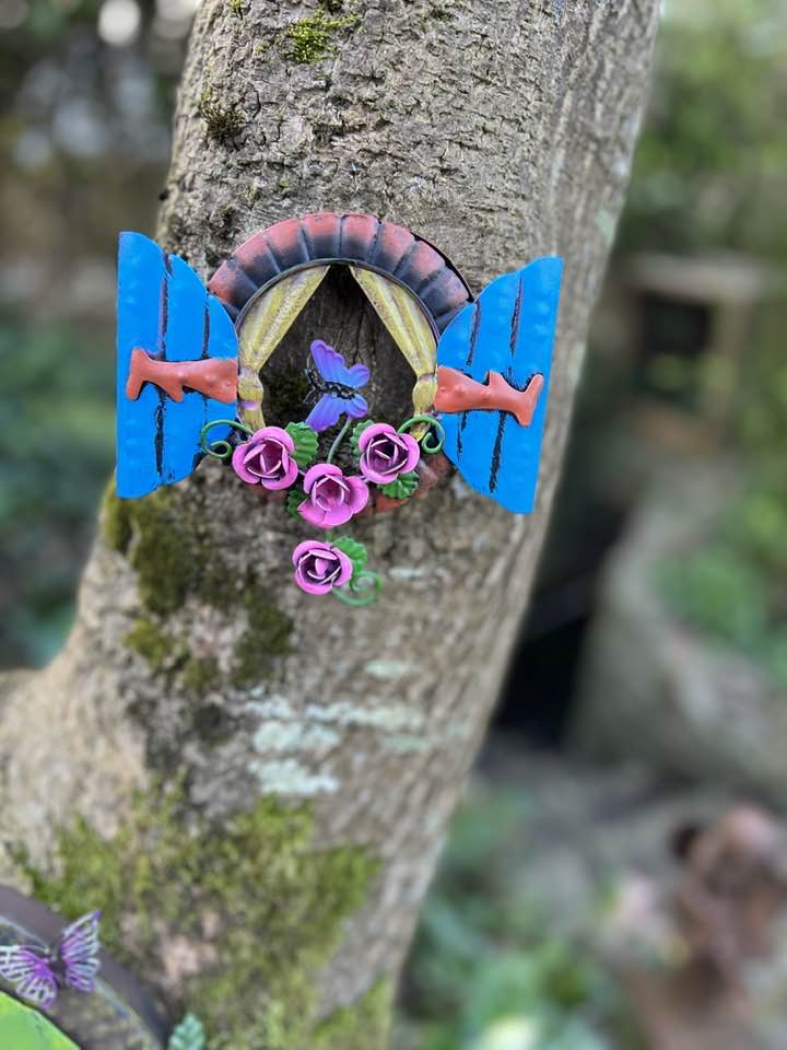 Create a little magic with this gorgeous and quirky Fairy Rose Window for your fairy garden. Made from metal and beautifully hand painted, you can put it on a fence, wall or tree to create a touch of enchantment!