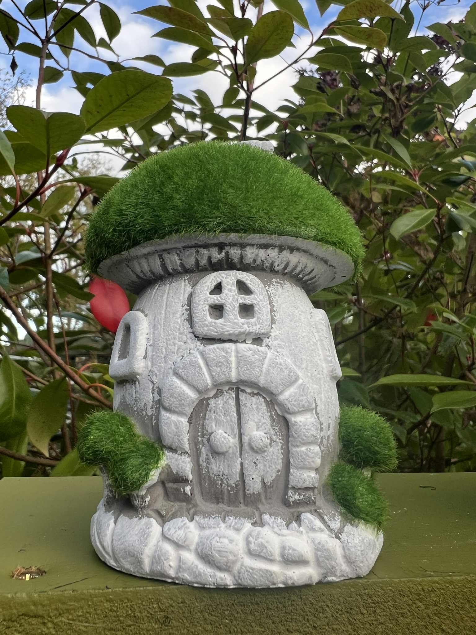Each mushroom house measures H13 x W9 x D7cm approx, constructed from durable resin and is features a green soft flocked material.