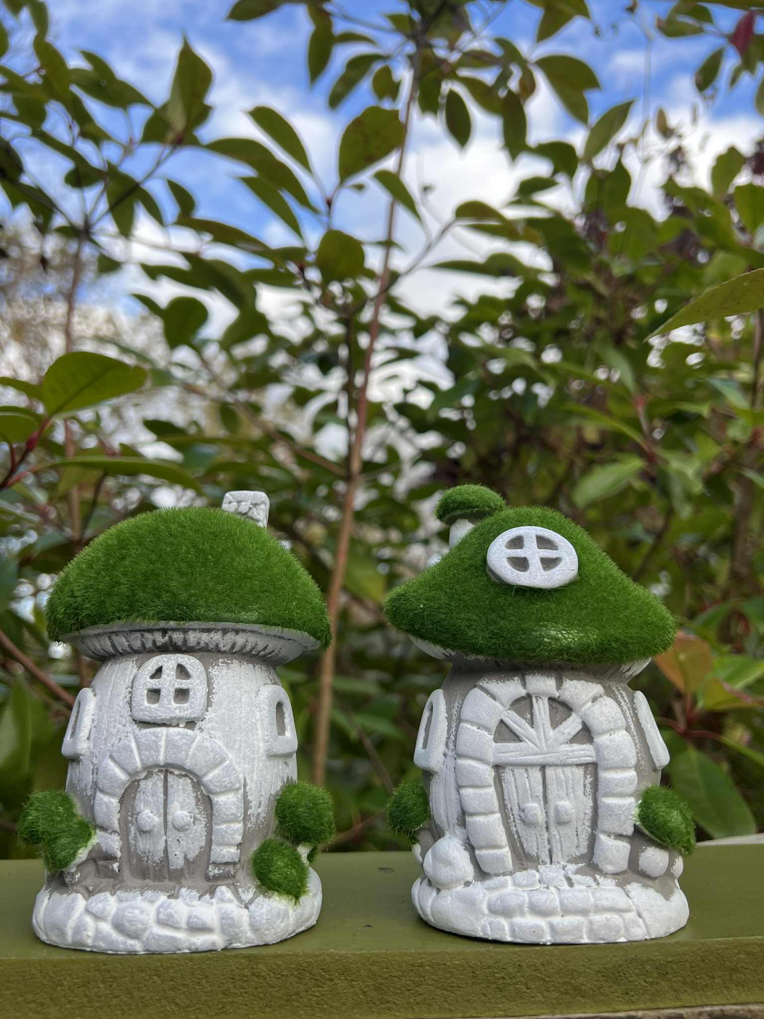 These adorable mushroom houses make ideal decorations for gardens and patios.