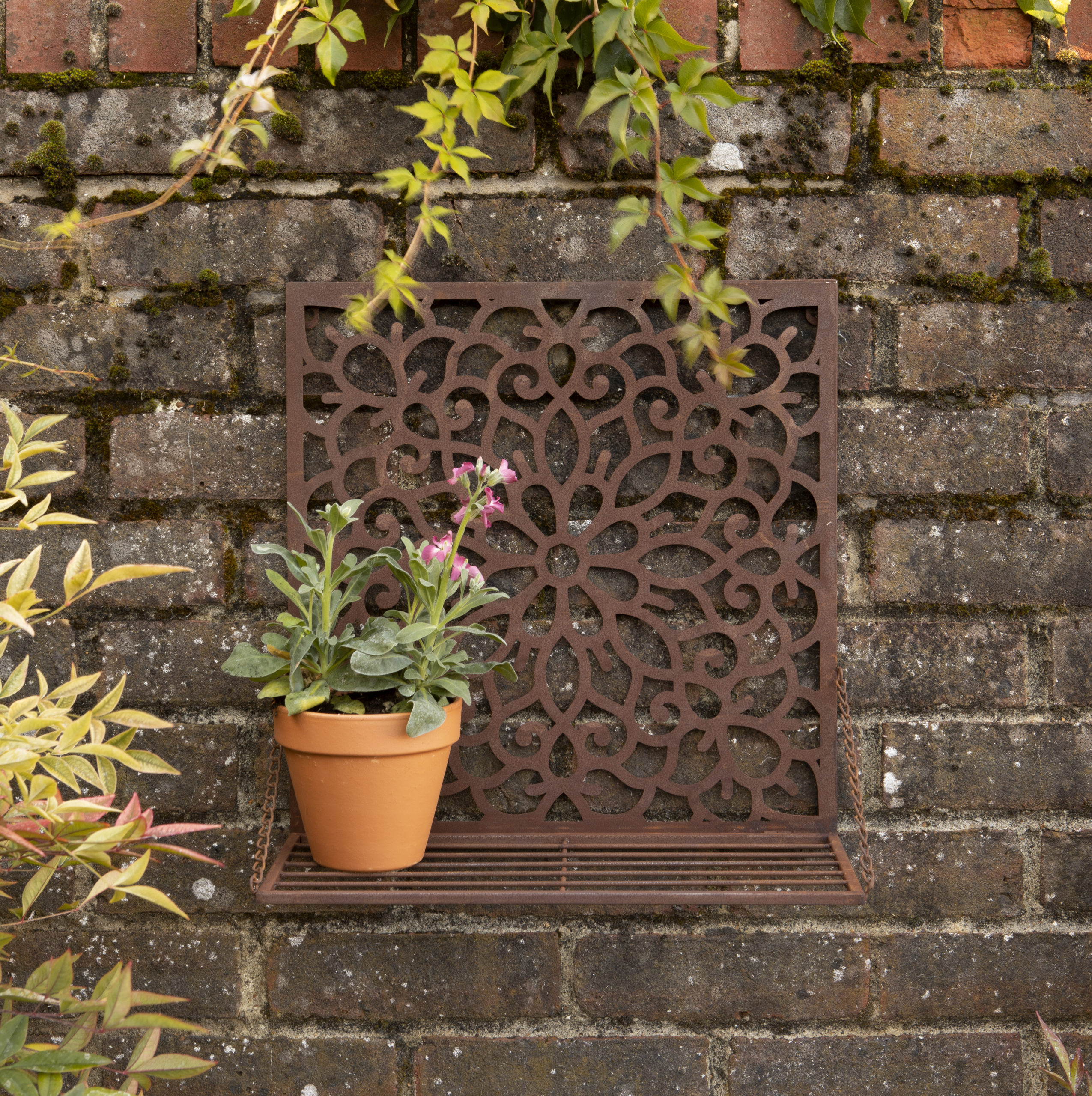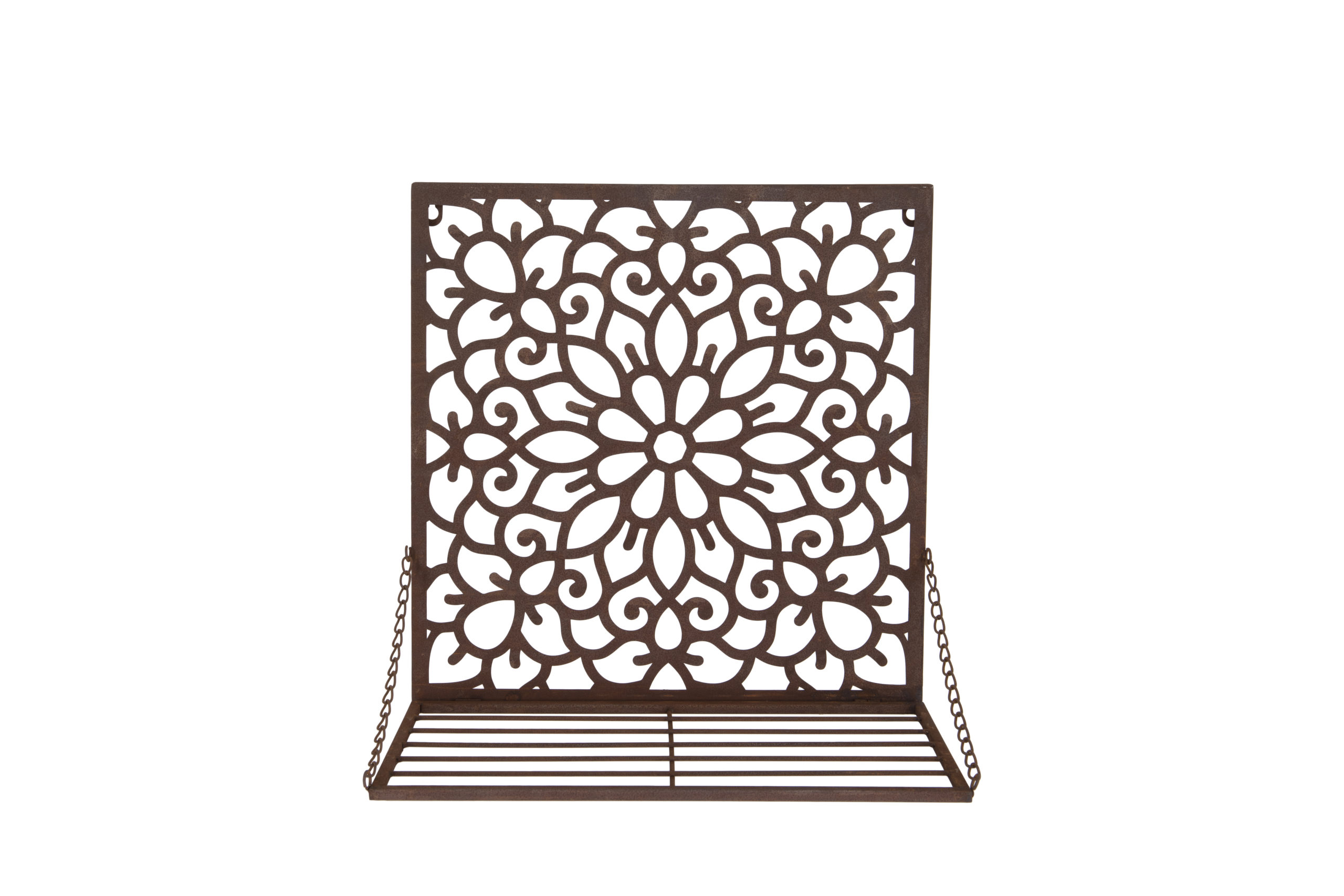 Beautiful Ornate Folding Plant Shelf. Made from metal that has been distressed to a rustic weathered look.