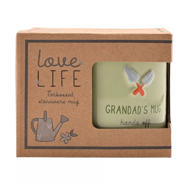 Classic stoneware mug in soft pastel colours with 3D embossed garden tools for a special grandad. In a gift-ready box, this is the ideal everyday mug to add a little sunshine to any home! Suitable for microwave and dishwasher.