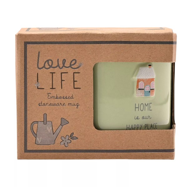 Classic stoneware mug in soft pastel colours with a 3D embossed house for a special someone. In a gift-ready box, this is the ideal everyday mug to add a little sunshine to any home! Suitable for microwave and dishwasher.