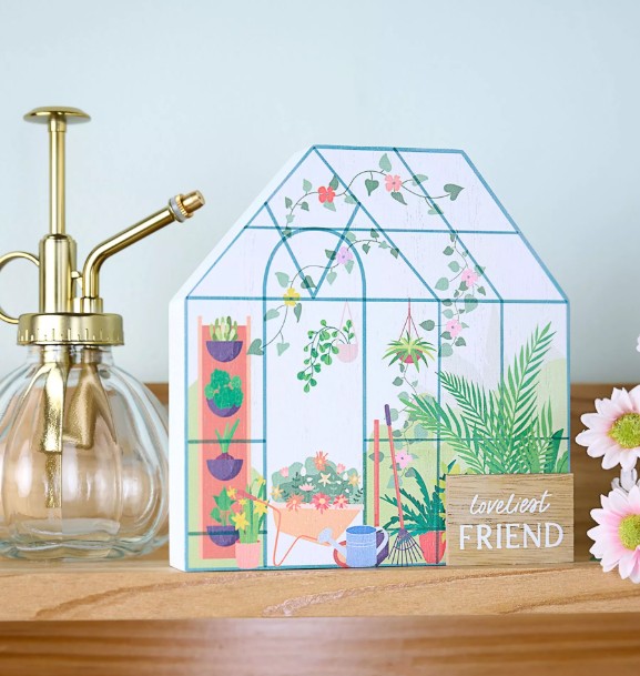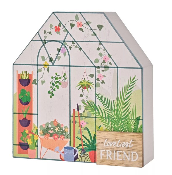 This attentively decorated plaque makes a flowery tribute to a beloved friend. The solid, greenhouse plaque is adorned with its beautiful ‘loveliest friend’ wording. This is complemented by a pastel-coloured printed illustration, which depicts an idyllic image of a greenhouse in full bloom.
