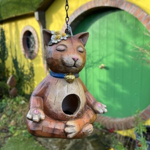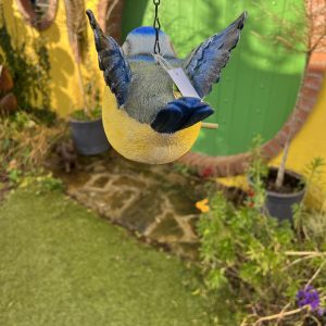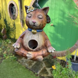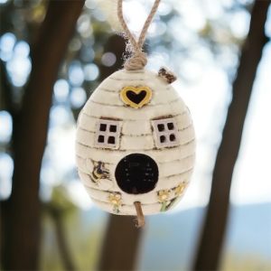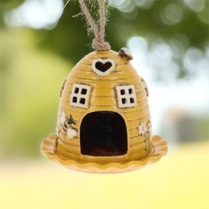 Delightful pottery bird feeder. Hung from a string. 12.5cm x 11.5cm x 11.5cm