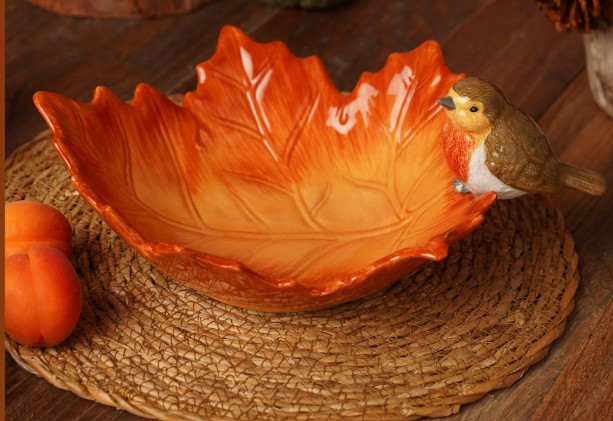 Home Gift Shop Home Decor Robin On A Leaf Ceramic Bowl