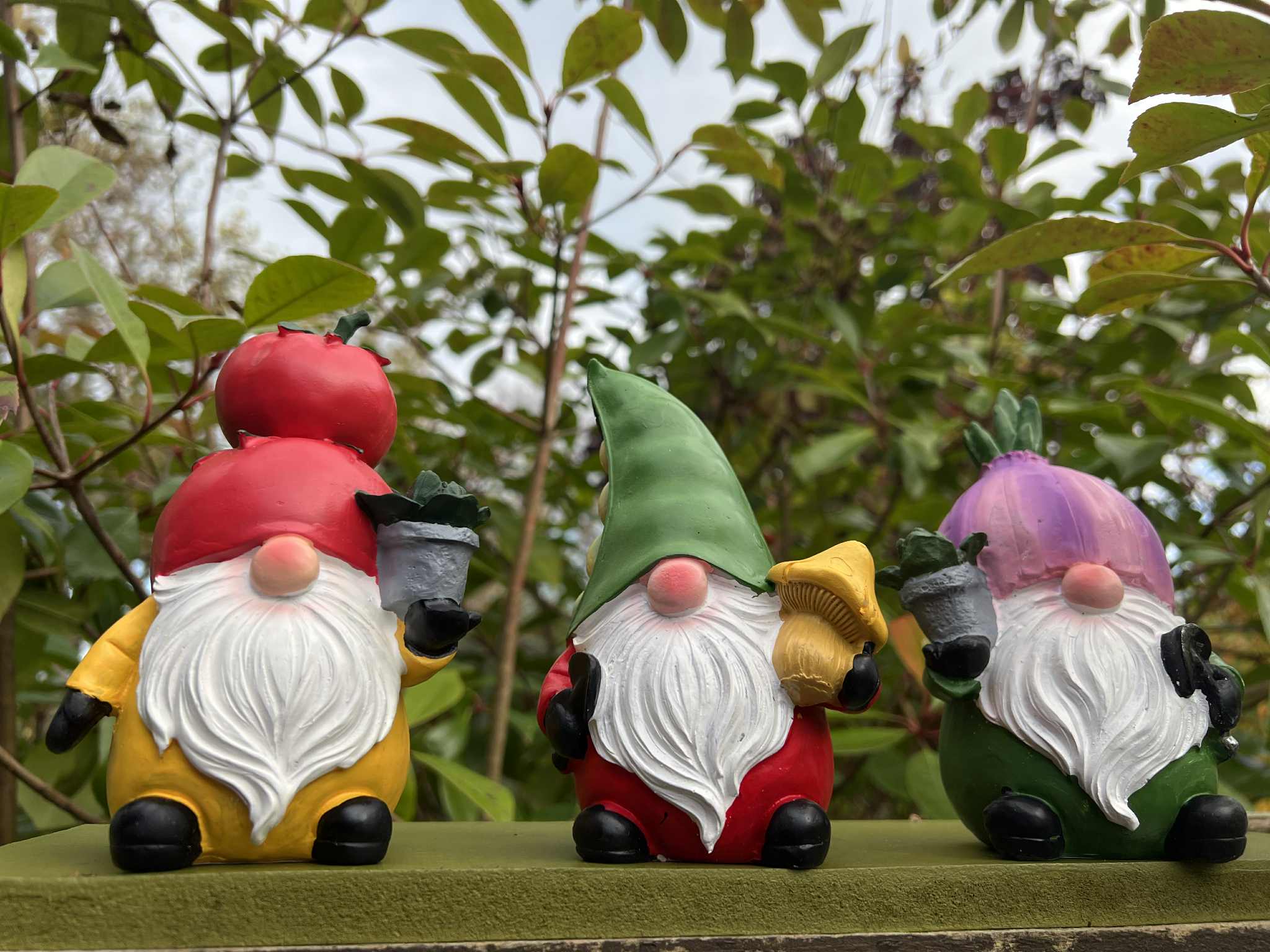 Each ornament measures approx H15.5 x W7 x D7cm, and are made of durable resin painted with bright colours, and shaped to resemble popular garden vegetables.