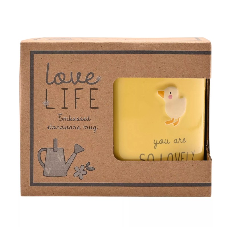 Classic stoneware mug in soft pastel colours with a 3D embossed duckling for a special someone. In a gift-ready box, this is the ideal everyday mug to add a little sunshine to any home! Suitable for microwave and dishwasher.